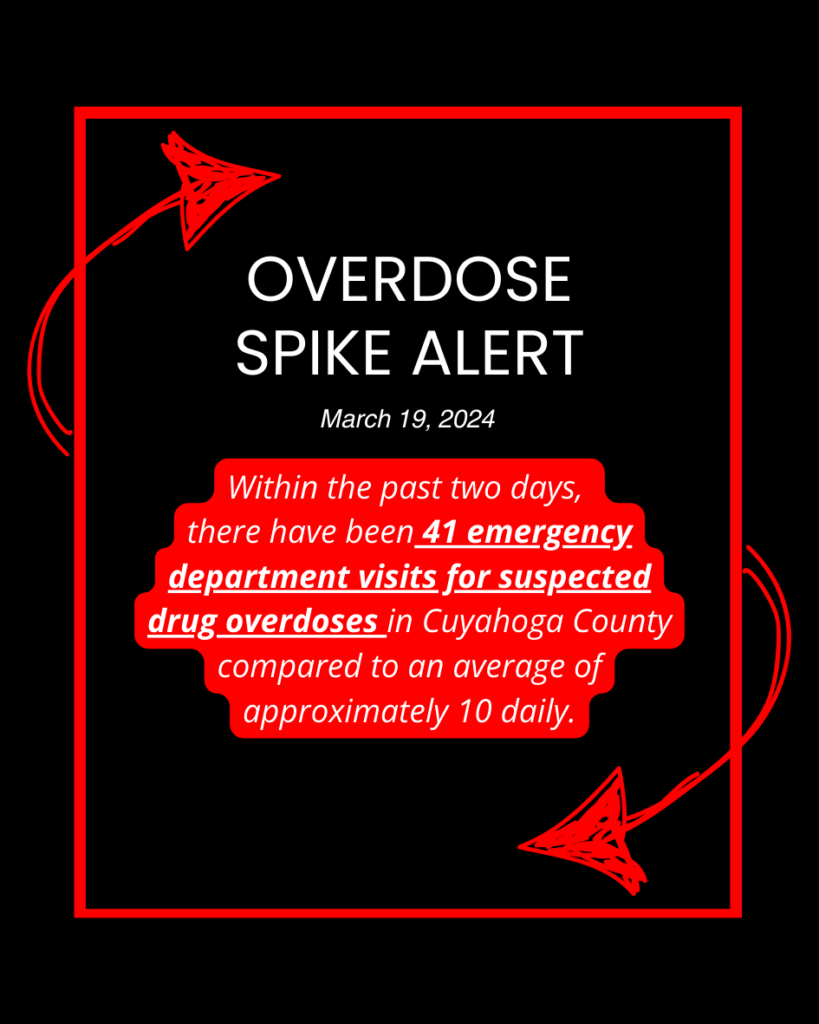 The Cuyahoga County Medical Examiner’s Office has seen an increase in overdose deaths (8 suspected) during this period as well.